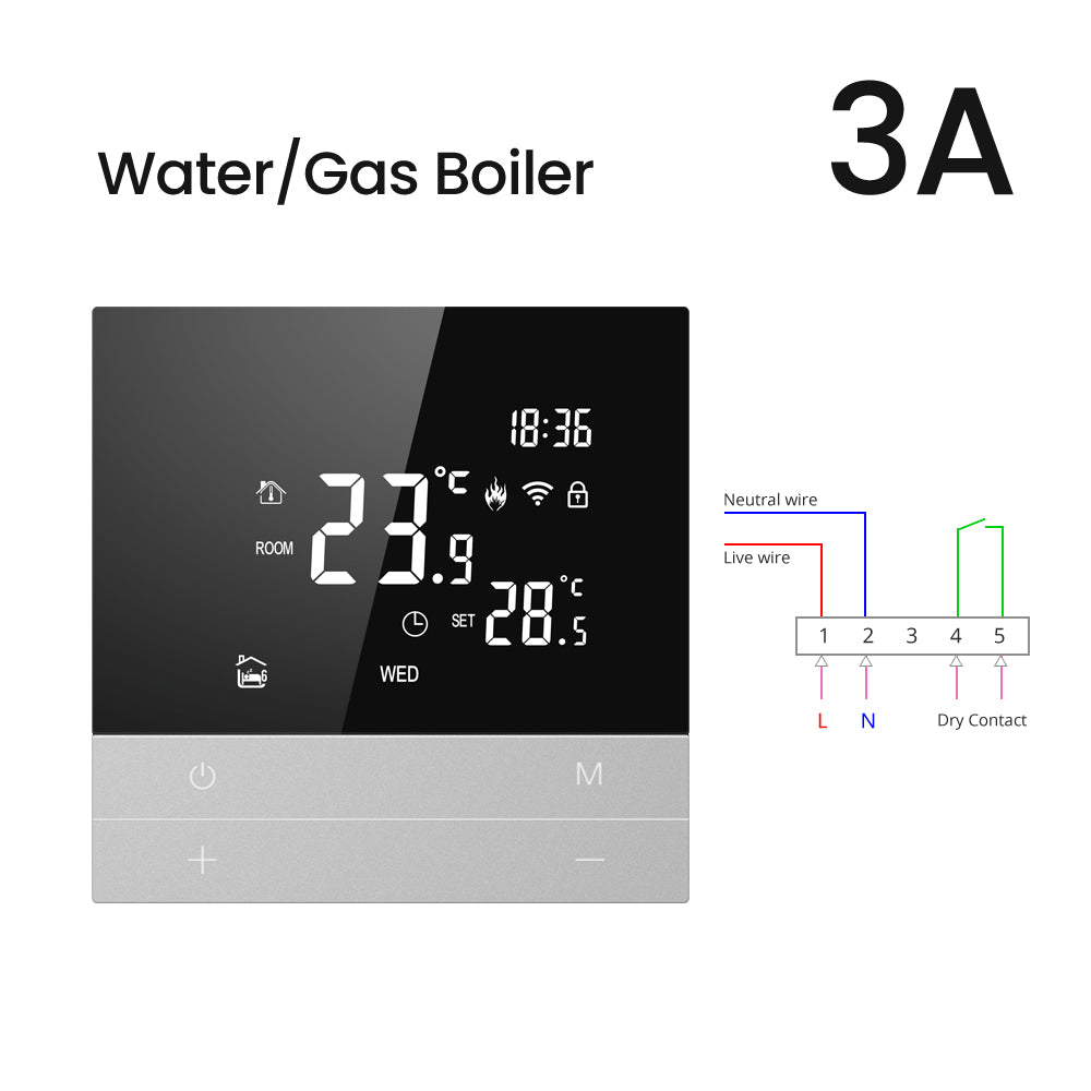 • Load current: 16A for electric heater and 3A for water heater/gas boiler