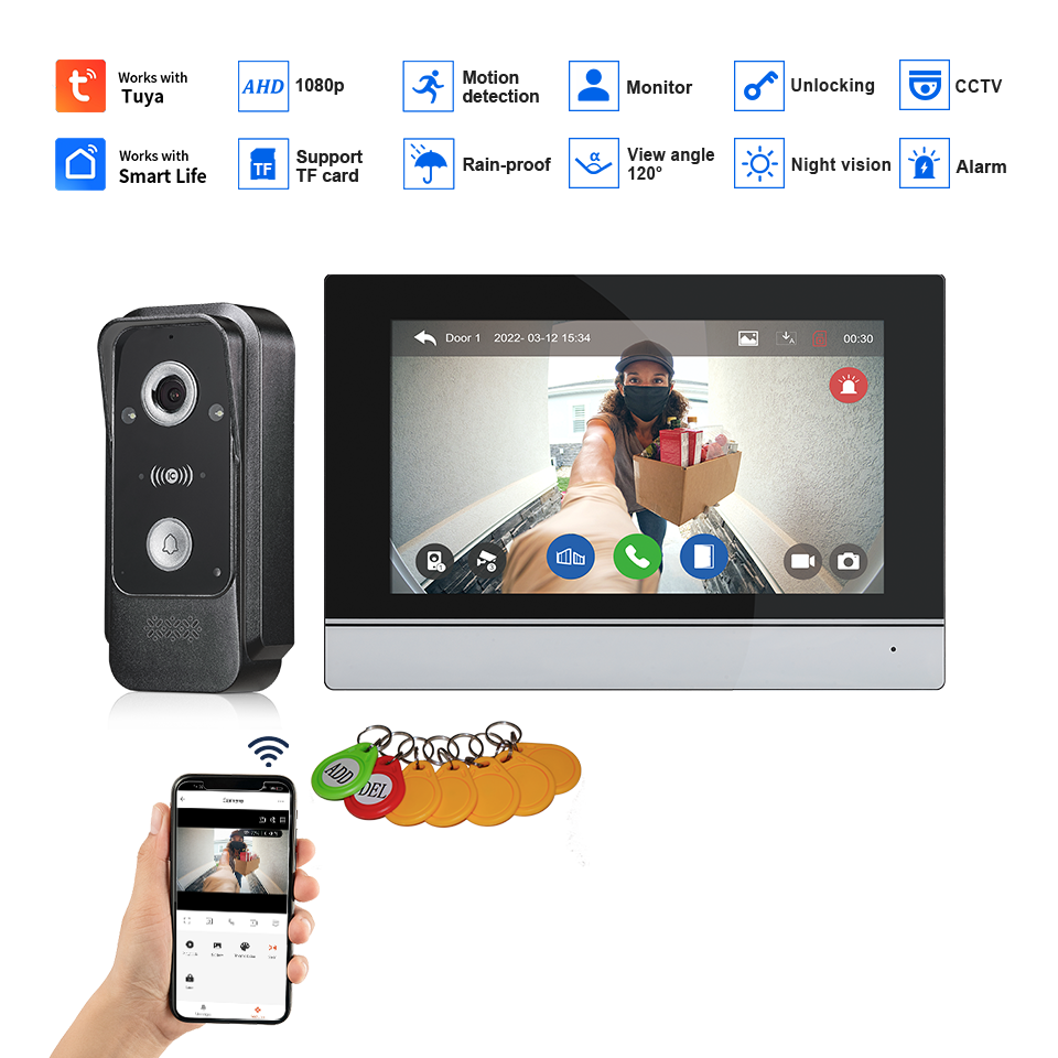 Tuya Wi-Fi Smart 1080P Video Door Phone IP65 Waterproof Motion Detection Unlock