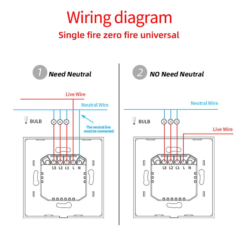 - Universal for with neutral wire and no neutral wire