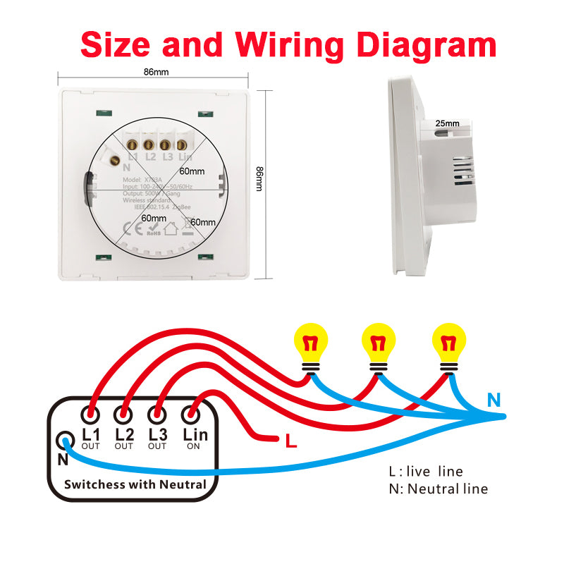 Zigbee Smart Light Switch Neutral Wire Required Works with Alexa Google Home Tuya Smartlife