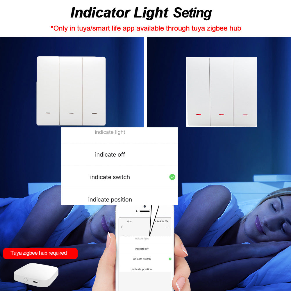 7. Indicator light and relay status can be set in tuya app after connect with tuya zigbee hub, can not set in zigbee2mqtt, ZHA and other zigbee platform because of proprietary protocol.