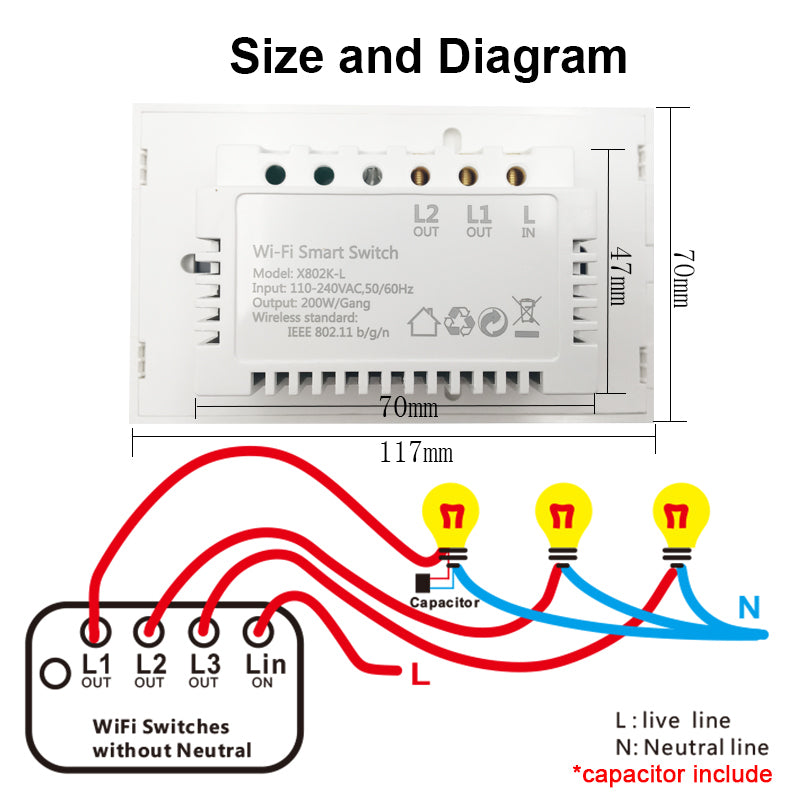 - Neutral wire not required